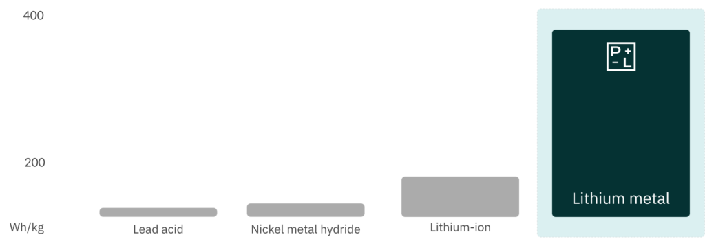 Lithium metal offers a tenfold increase in energy capacity compared with graphite found in today’s lithium-ion anodes, drastically reducing battery weight and volume.